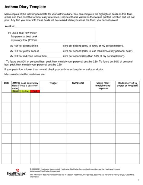 Download asthma diary template Library Binding